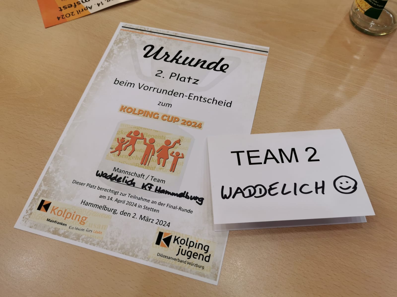 Am 02.03.2024 konnte das Hammelburger Team, die Waddelich, beim Vorentscheid des Kolping-Cups einen erfolgreichen zweiten Platz belegen.